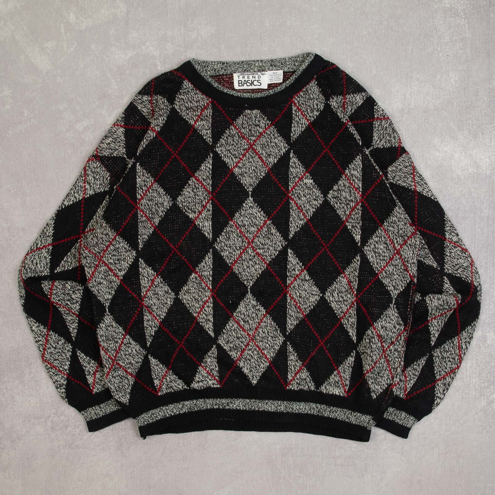Men's Vintage 1980s Argyle Patterned Knitted Jumper
