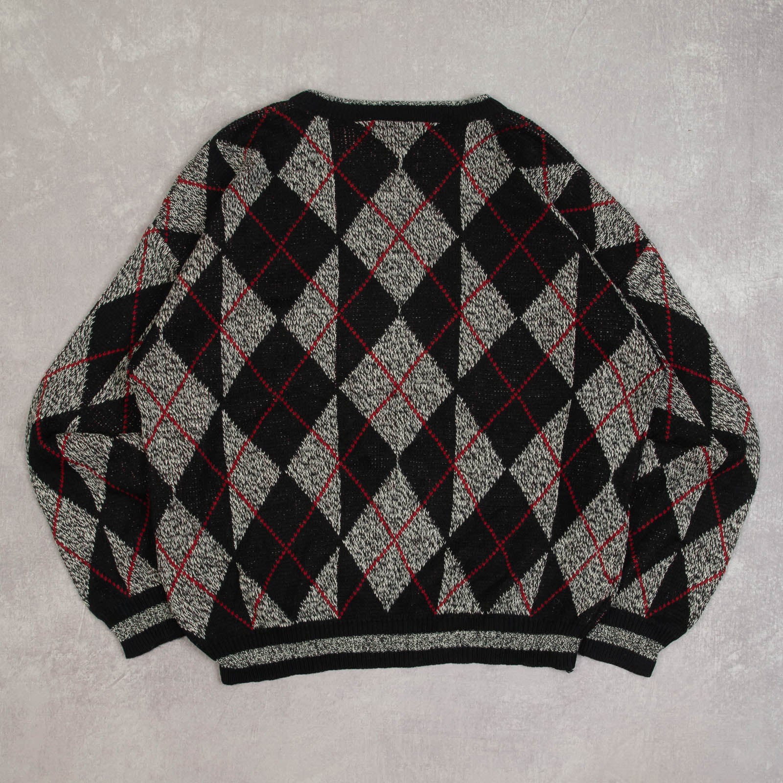 MEN'S VINTAGE 1980S ARGYLE PATTERNED KNITTED JUMPER - X-LARGE