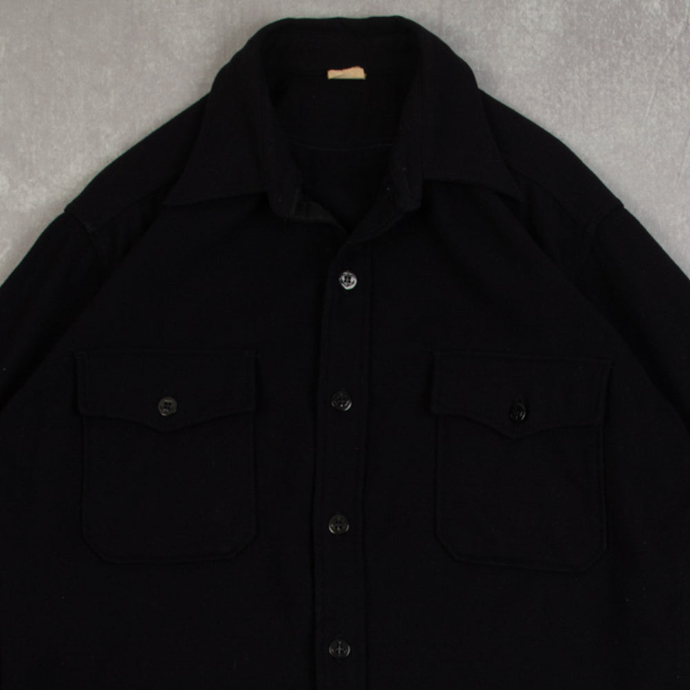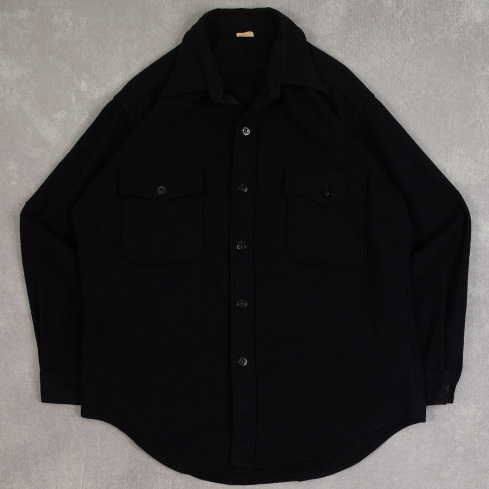 MEN'S VINTAGE 1980S CPO NAVY WOOL SHIRT - LARGE
