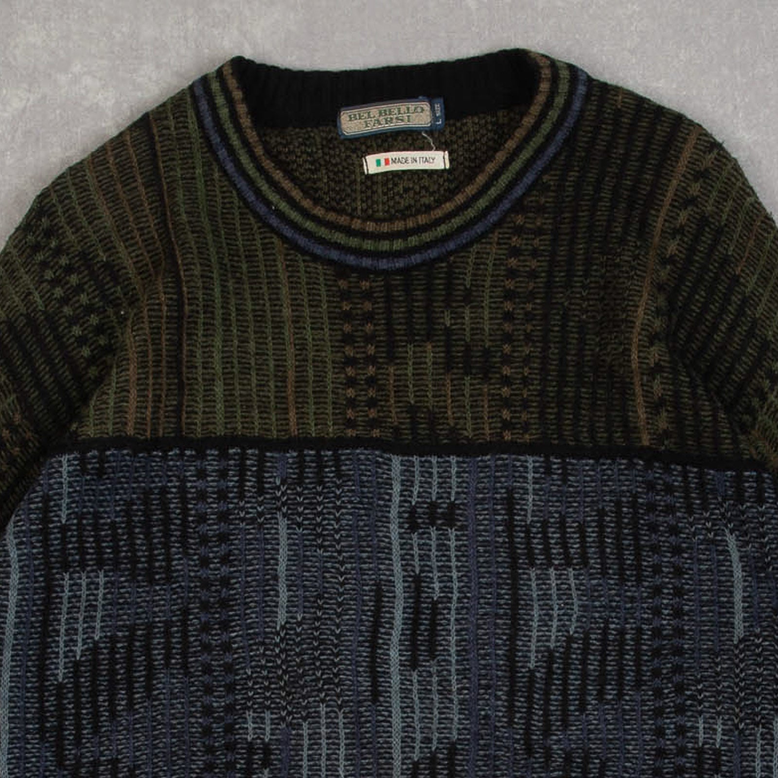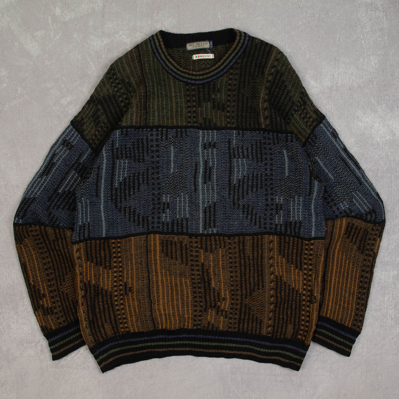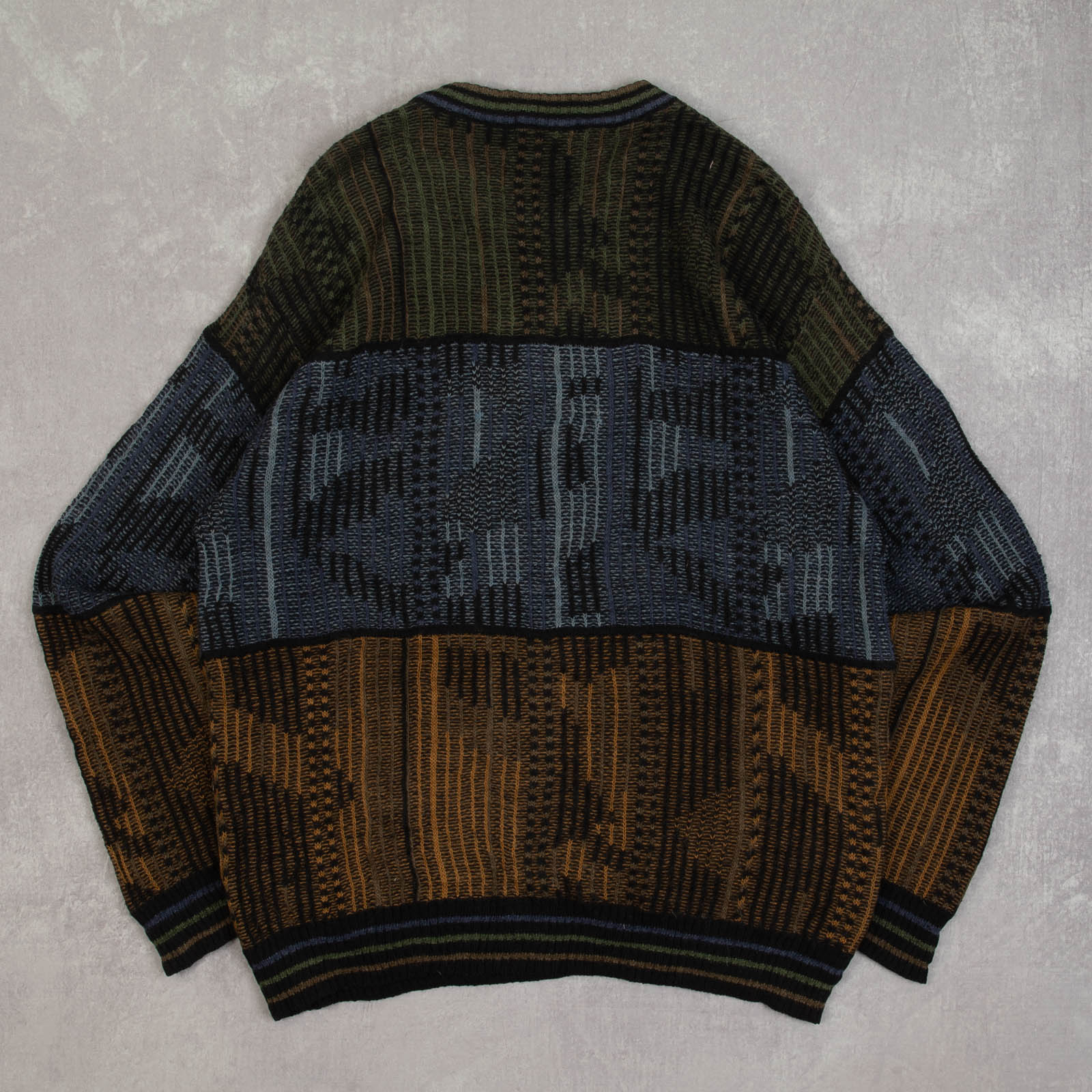 MEN'S VINTAGE 1980S STRUCTURED PATTERNED KNITTED JUMPER - LARGE