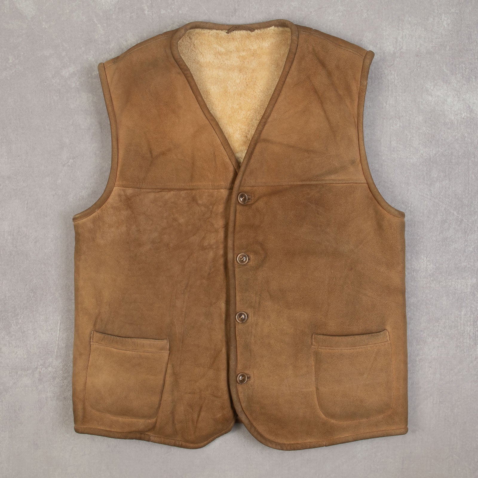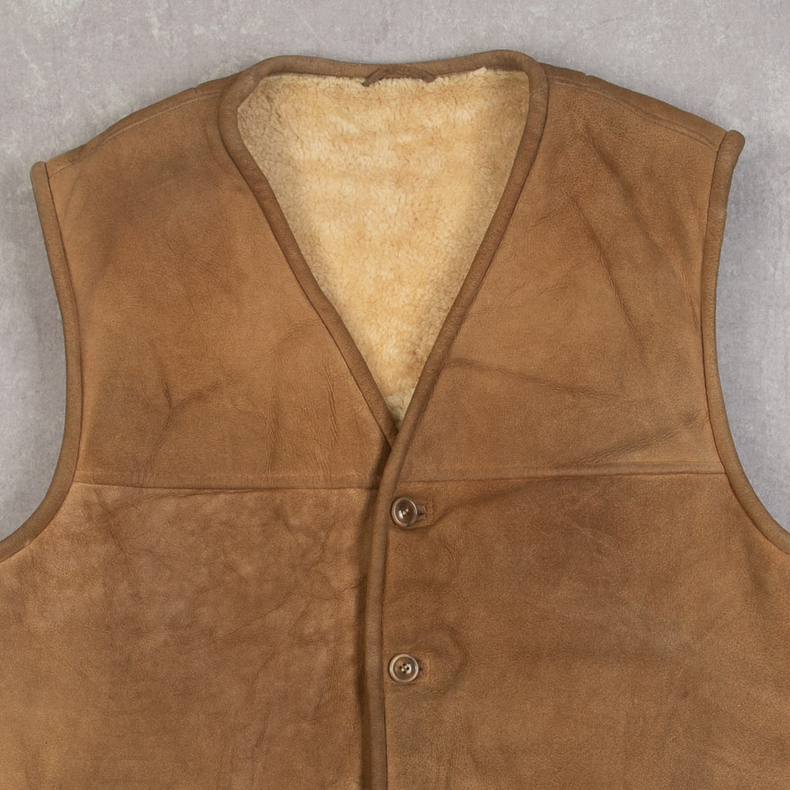 MEN'S VINTAGE 1980S SUEDE LEATHER VEST JACKET - LARGE