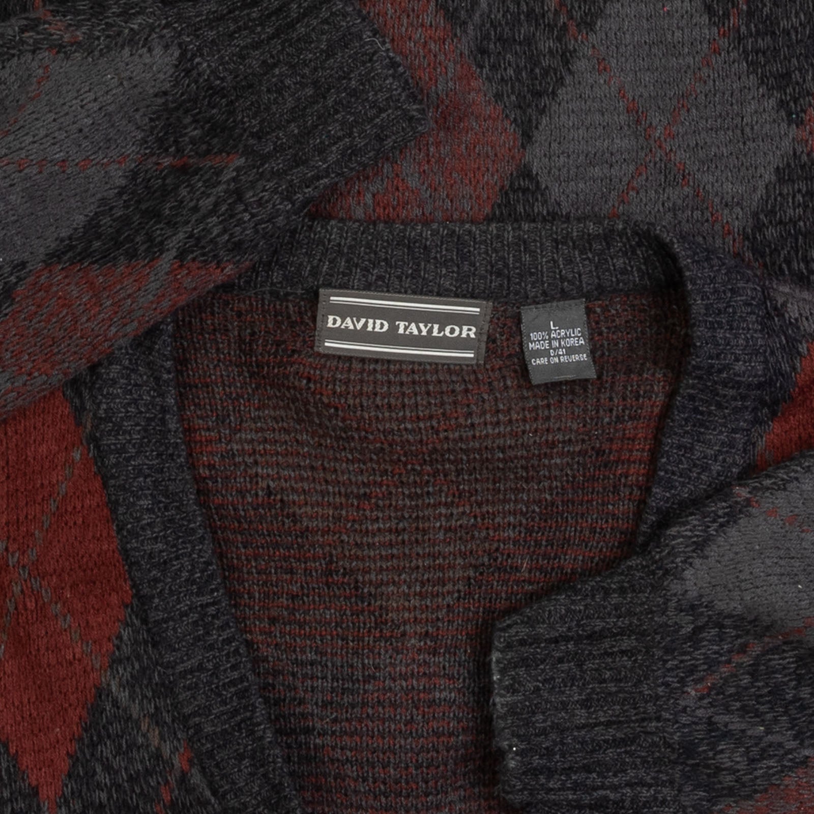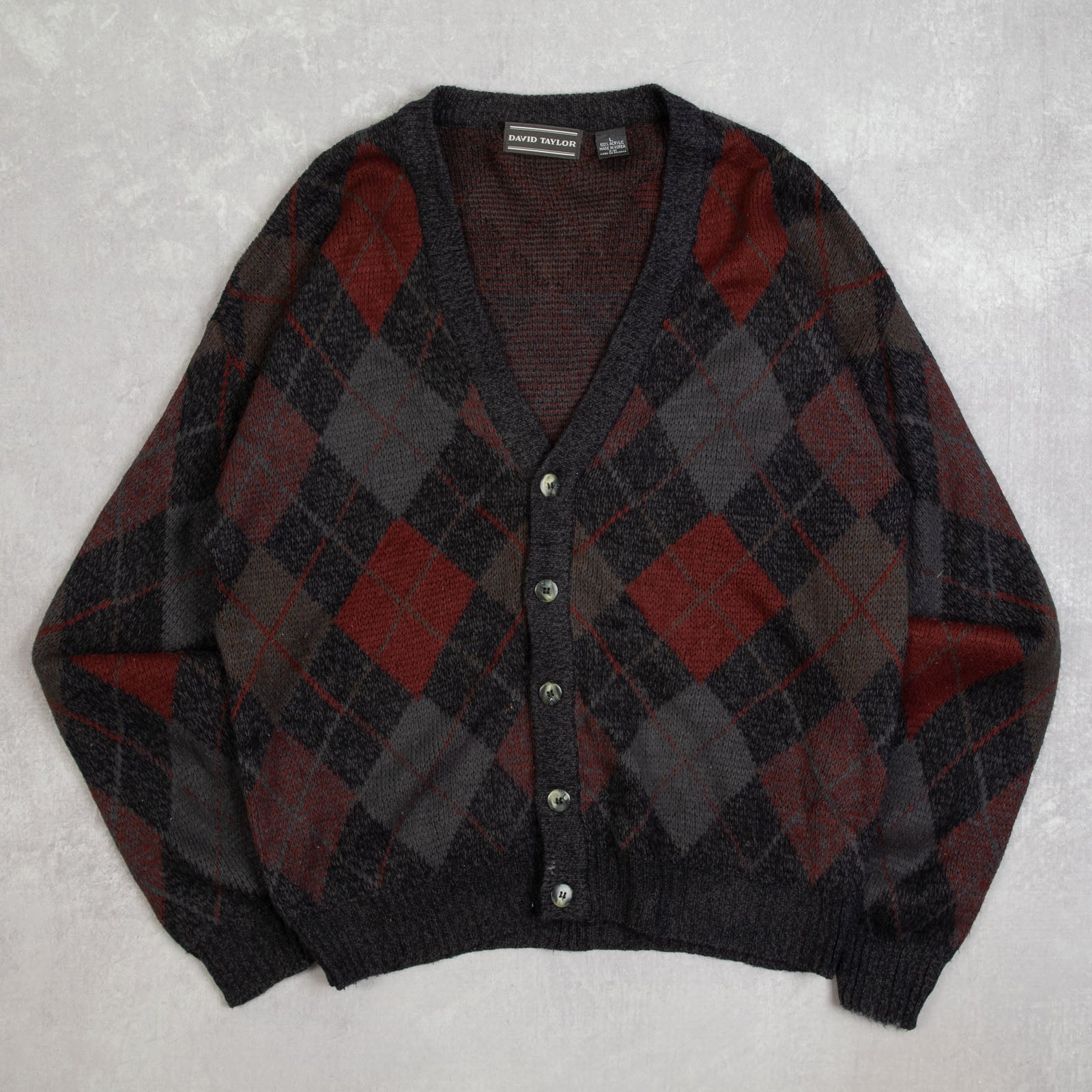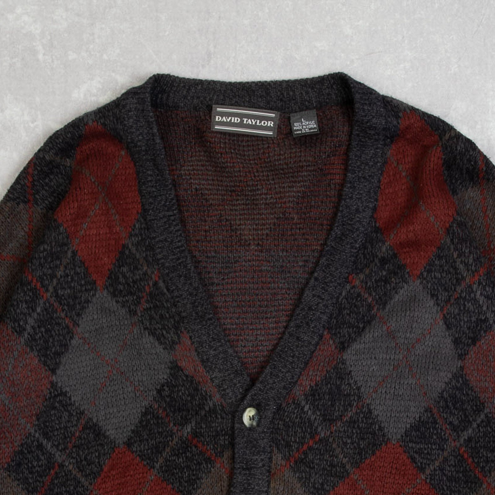MEN'S VINTAGE 1990S ARGYLE PATTERNED KNITTED CARDIGAN - LARGE