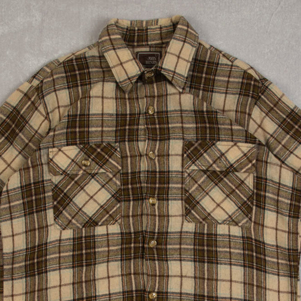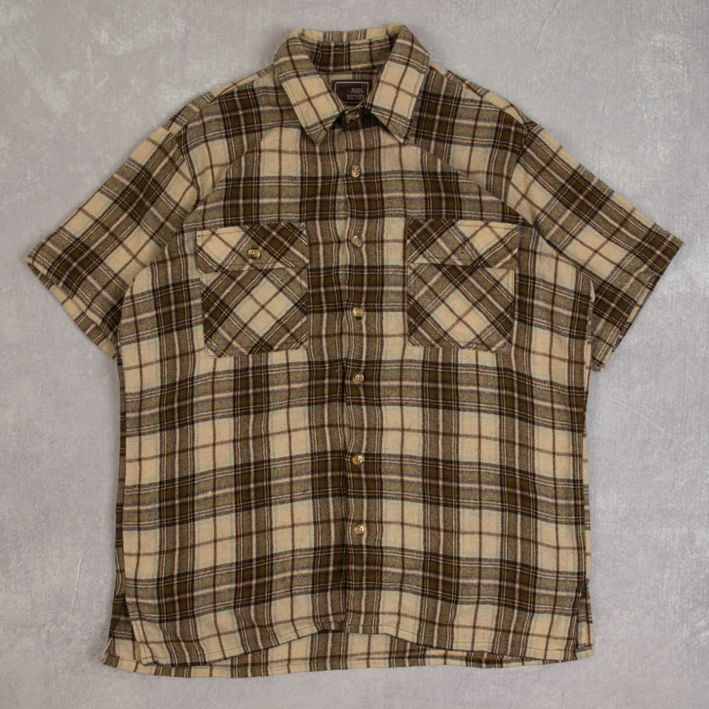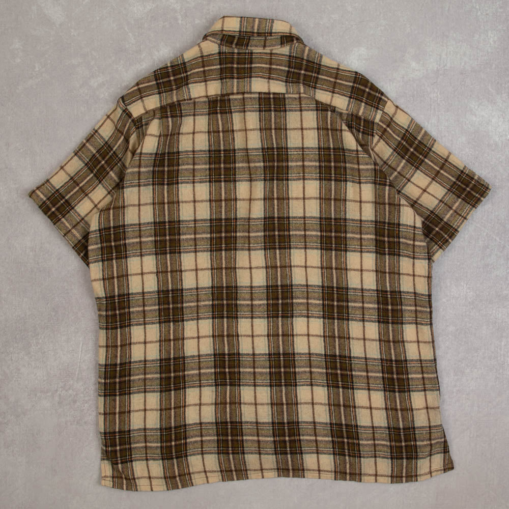 MEN'S VINTAGE 1990S CHECKED WOOL SHORT SLEEVE SHIRT - LARGE