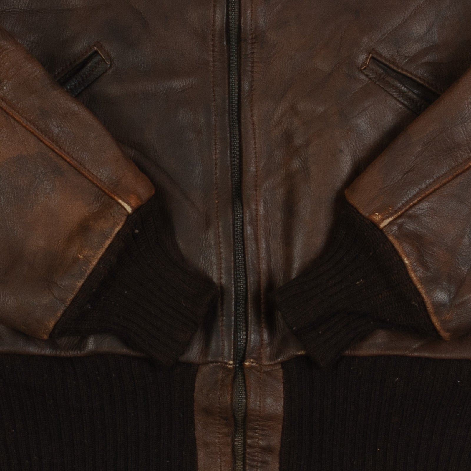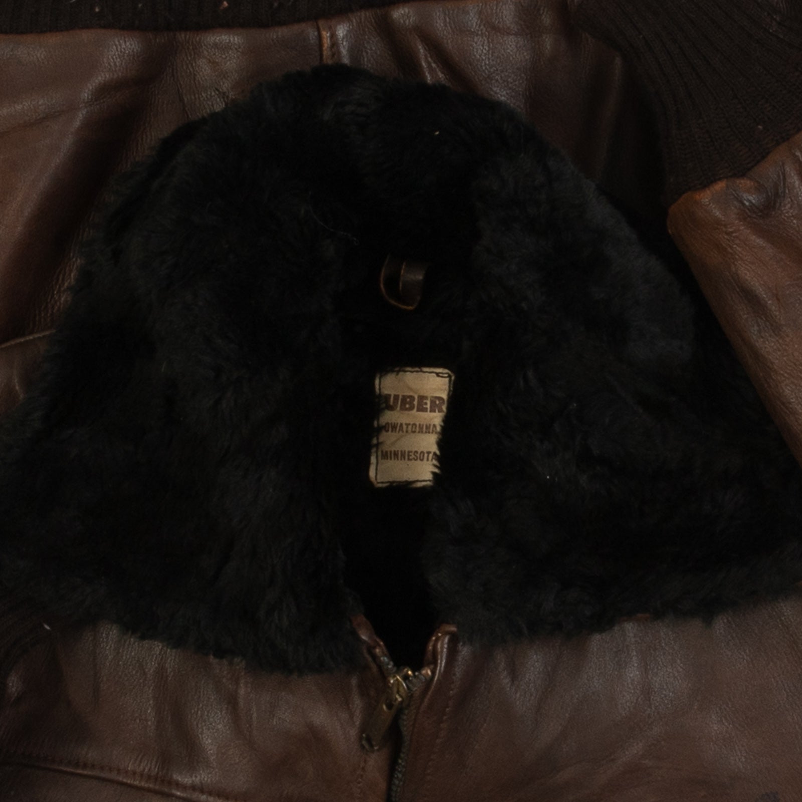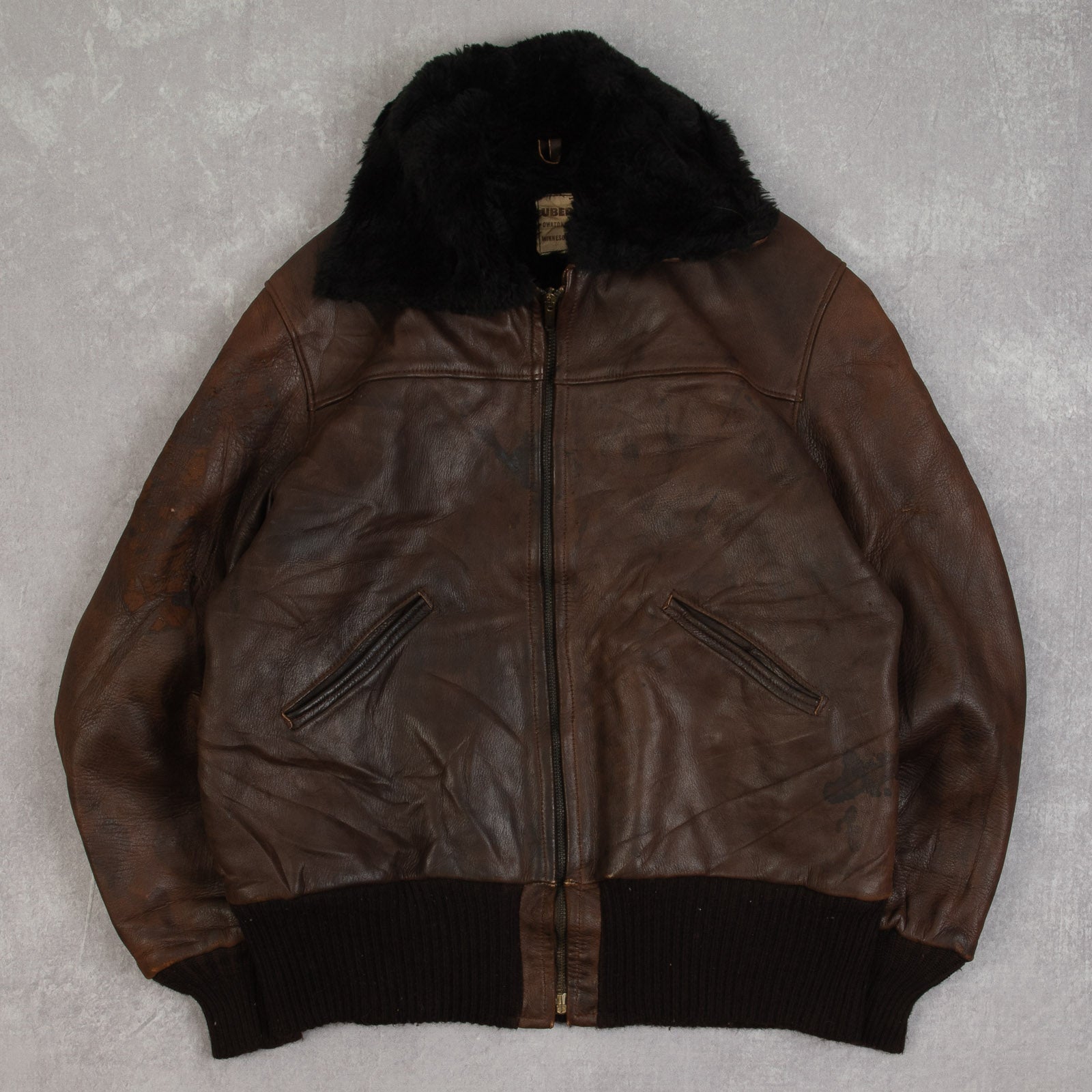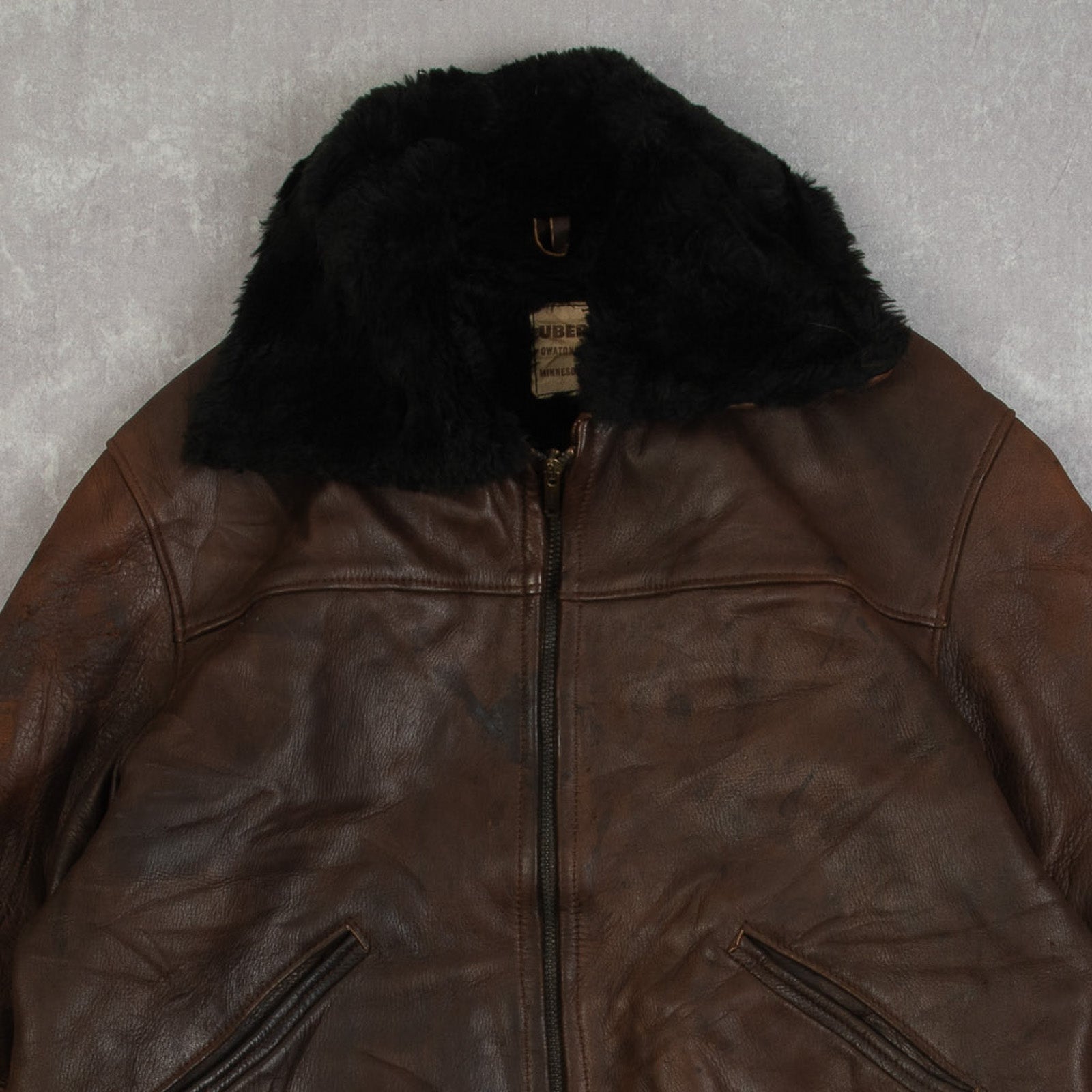 MEN'S VINTAGE 1990S FAUX FUR LINED LEATHER BOMBER JACKET - MEDIUM