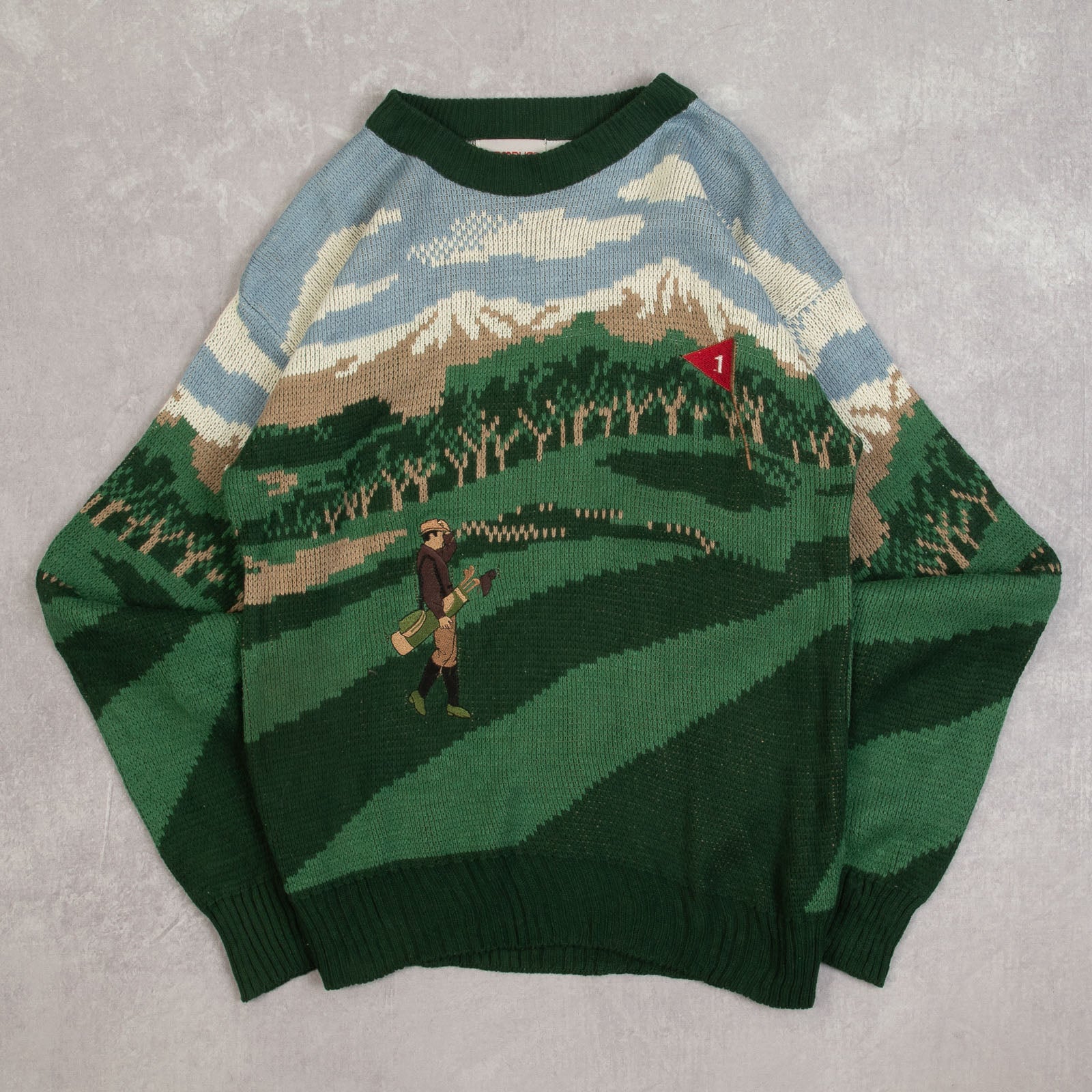 Men's Vintage 1990s Golf Landscape Knitted Jumper