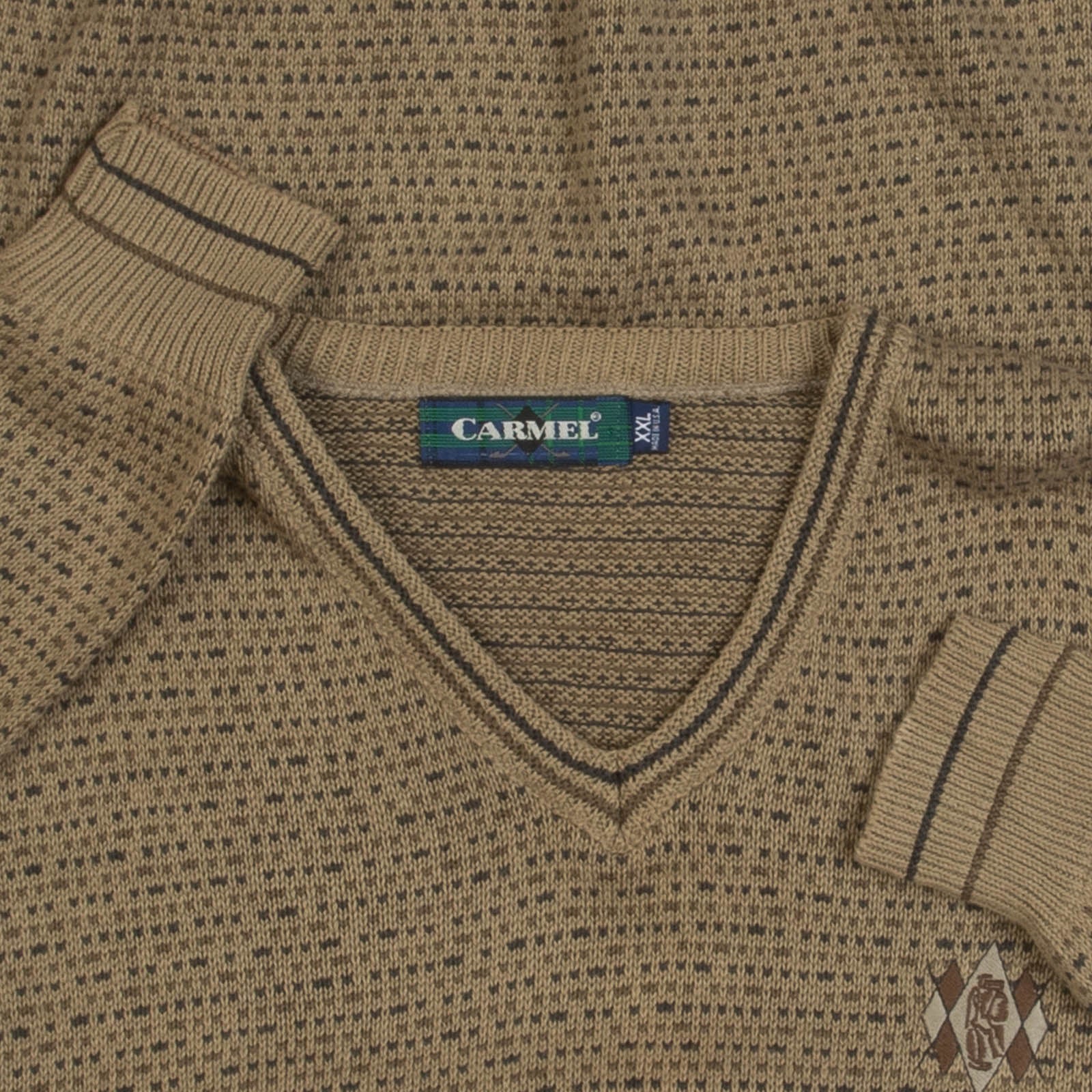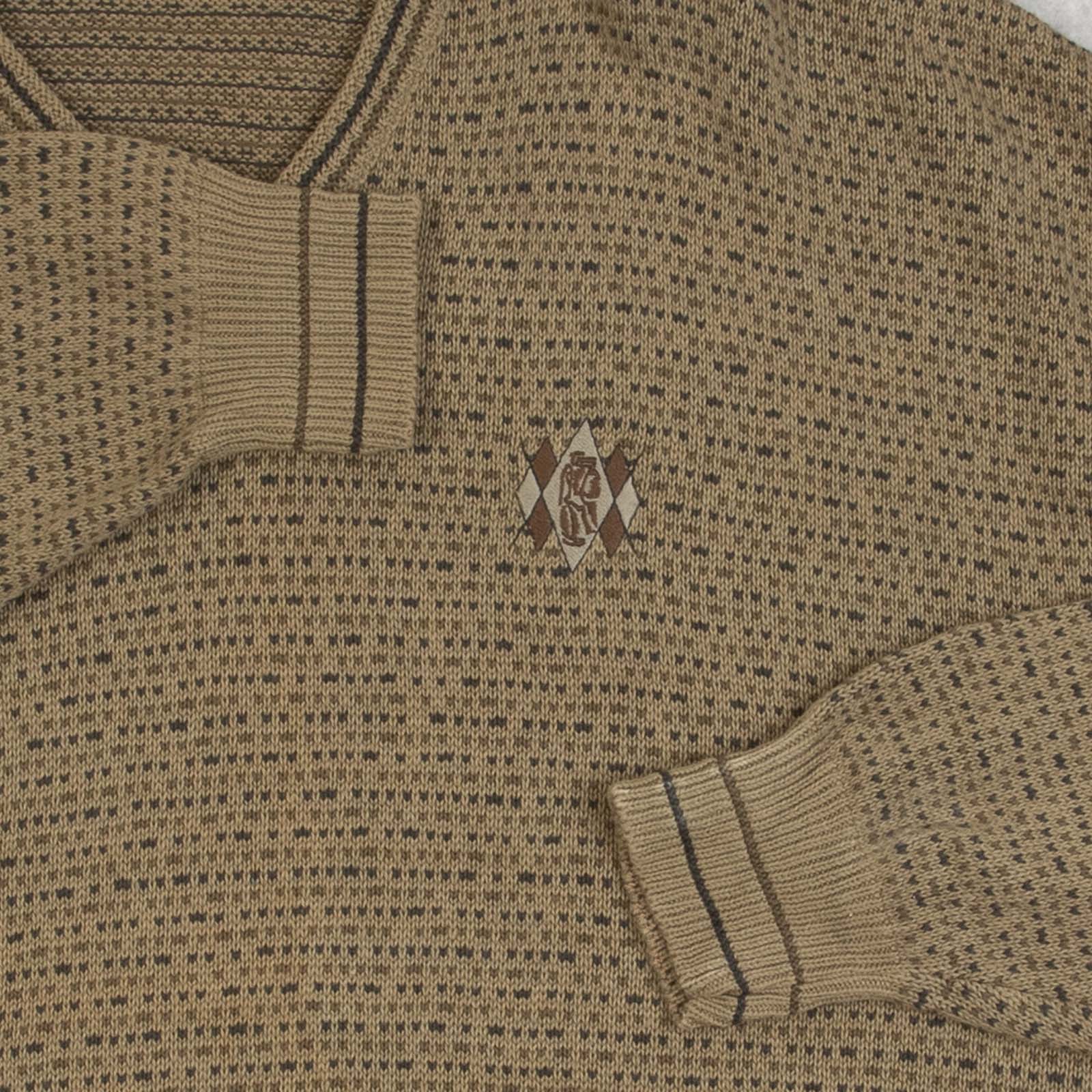 Men's Vintage 1990s Patterned V-Neck Knitted Jumper