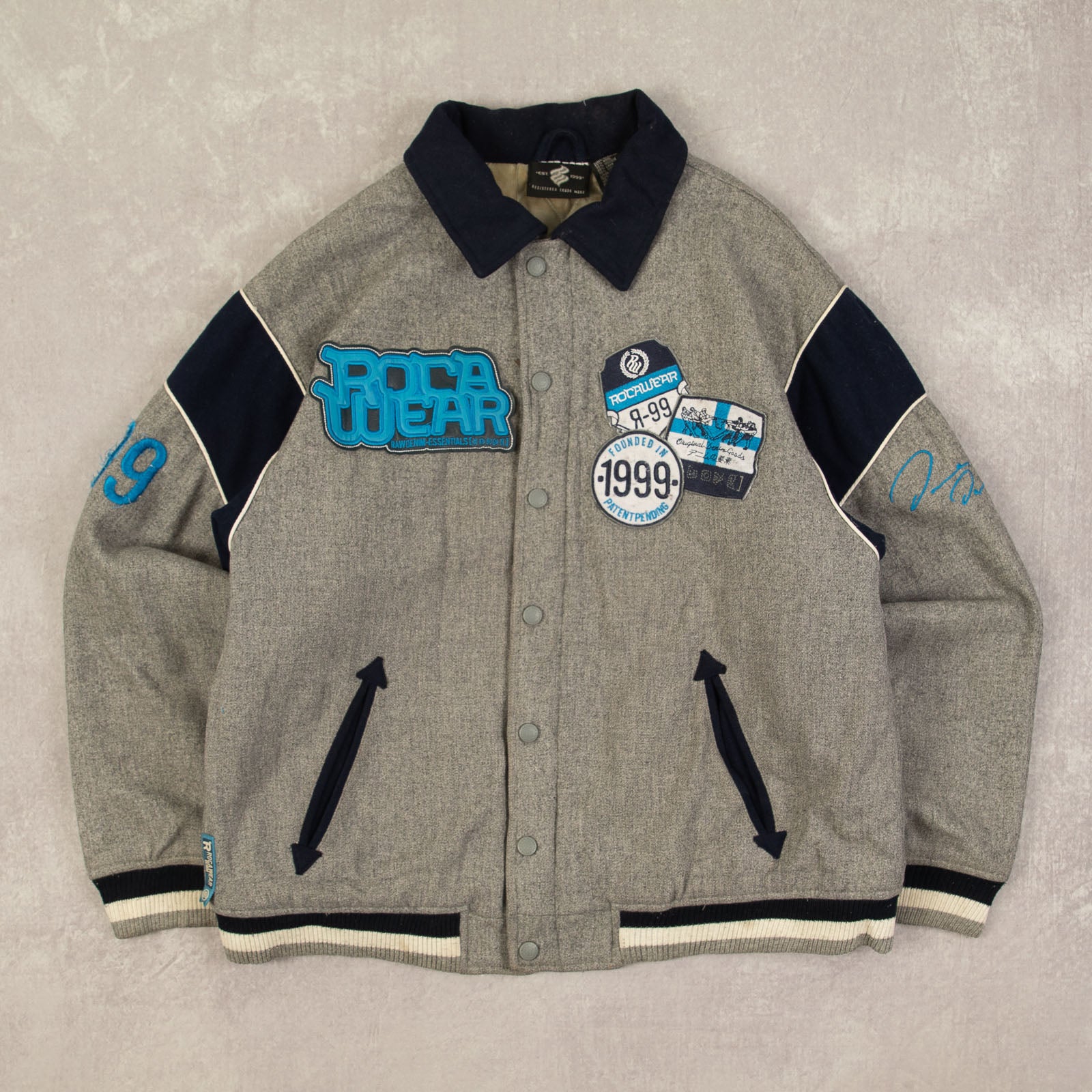 Men's Vintage 1990s Rocawear Patch Varsity Bomber Jacket
