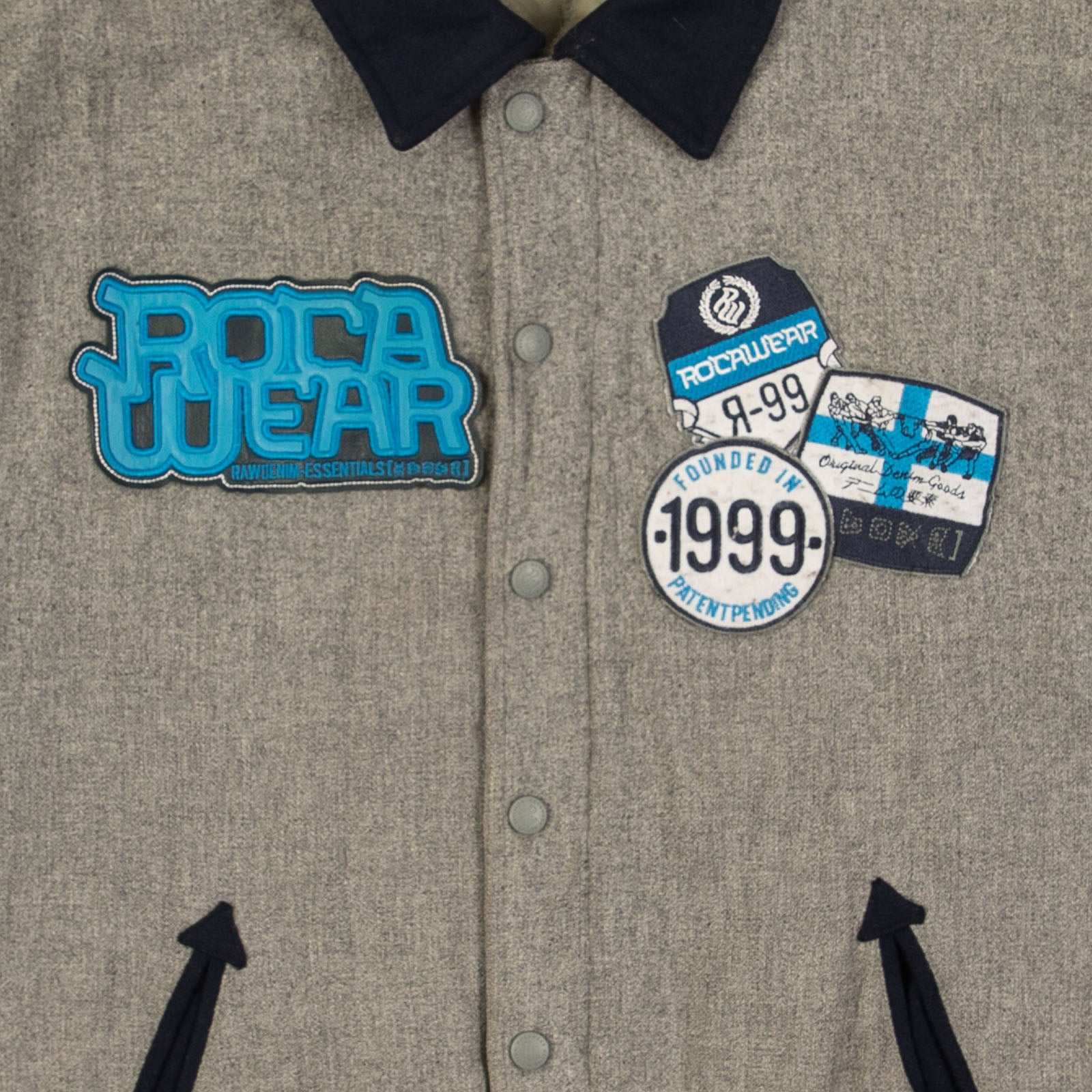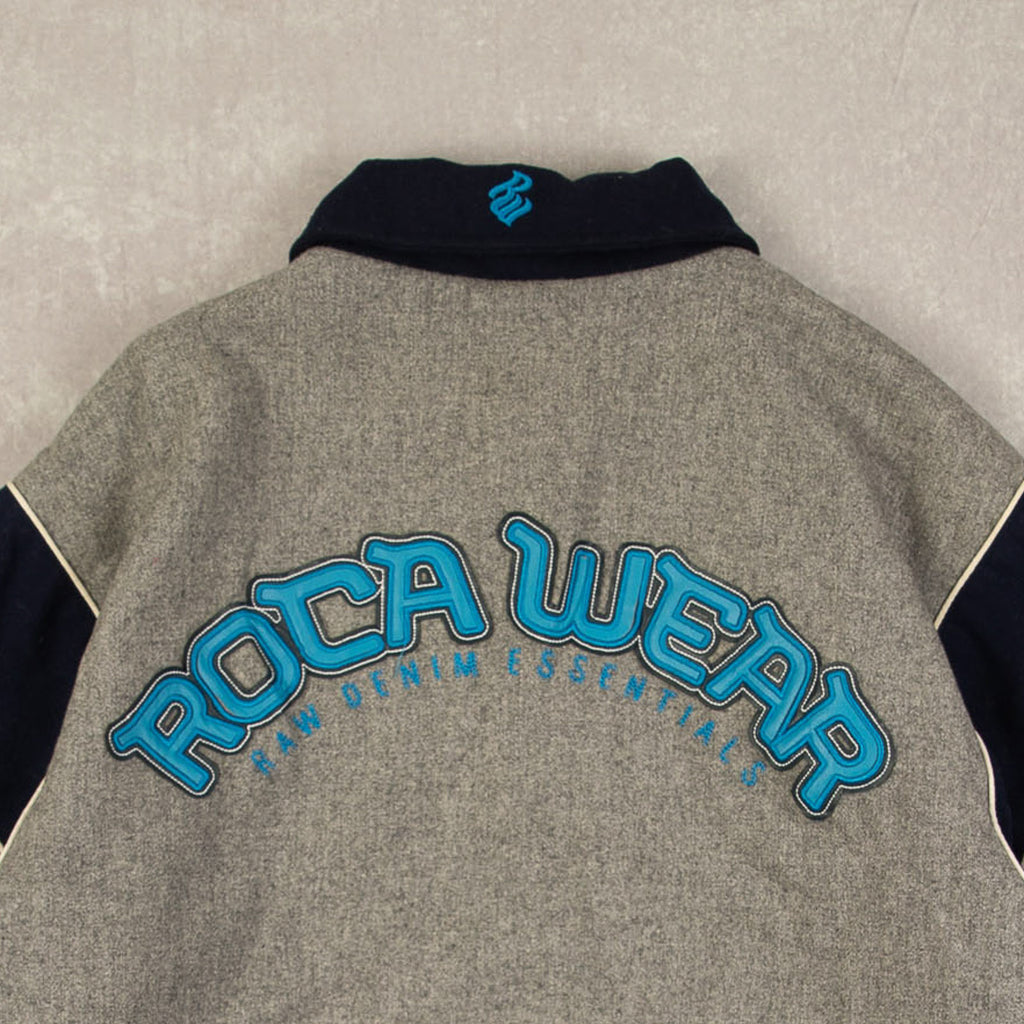 MEN'S VINTAGE 1990S ROCAWEAR PATCH VARSITY BOMBER JACKET - SMALL