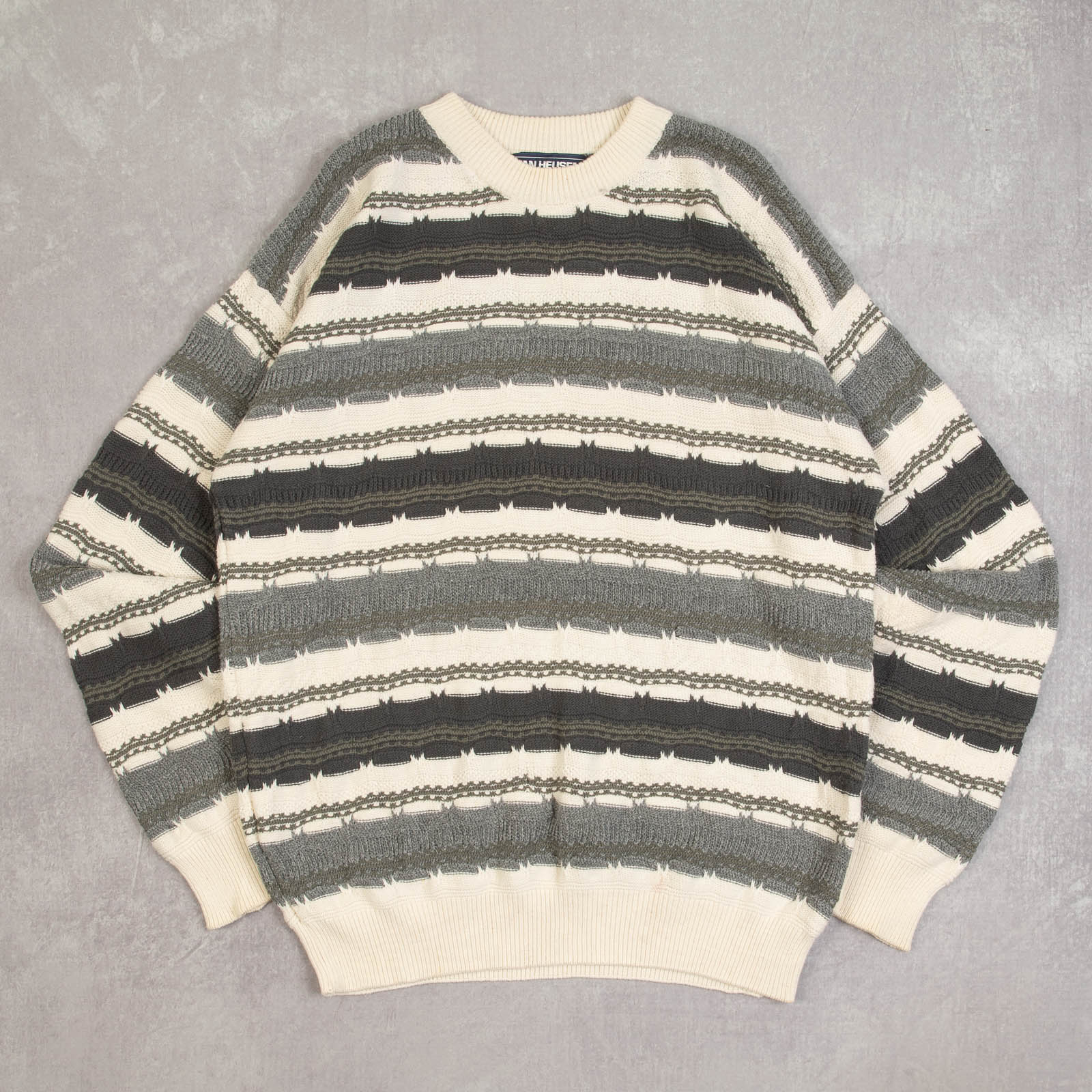 Men's Vintage 1990s Striped Structured Knitted Jumper