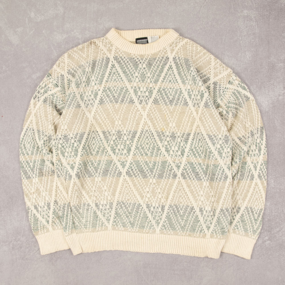 MEN'S VINTAGE 1990S STRUCTURED KNITTED JUMPER - X-LARGE