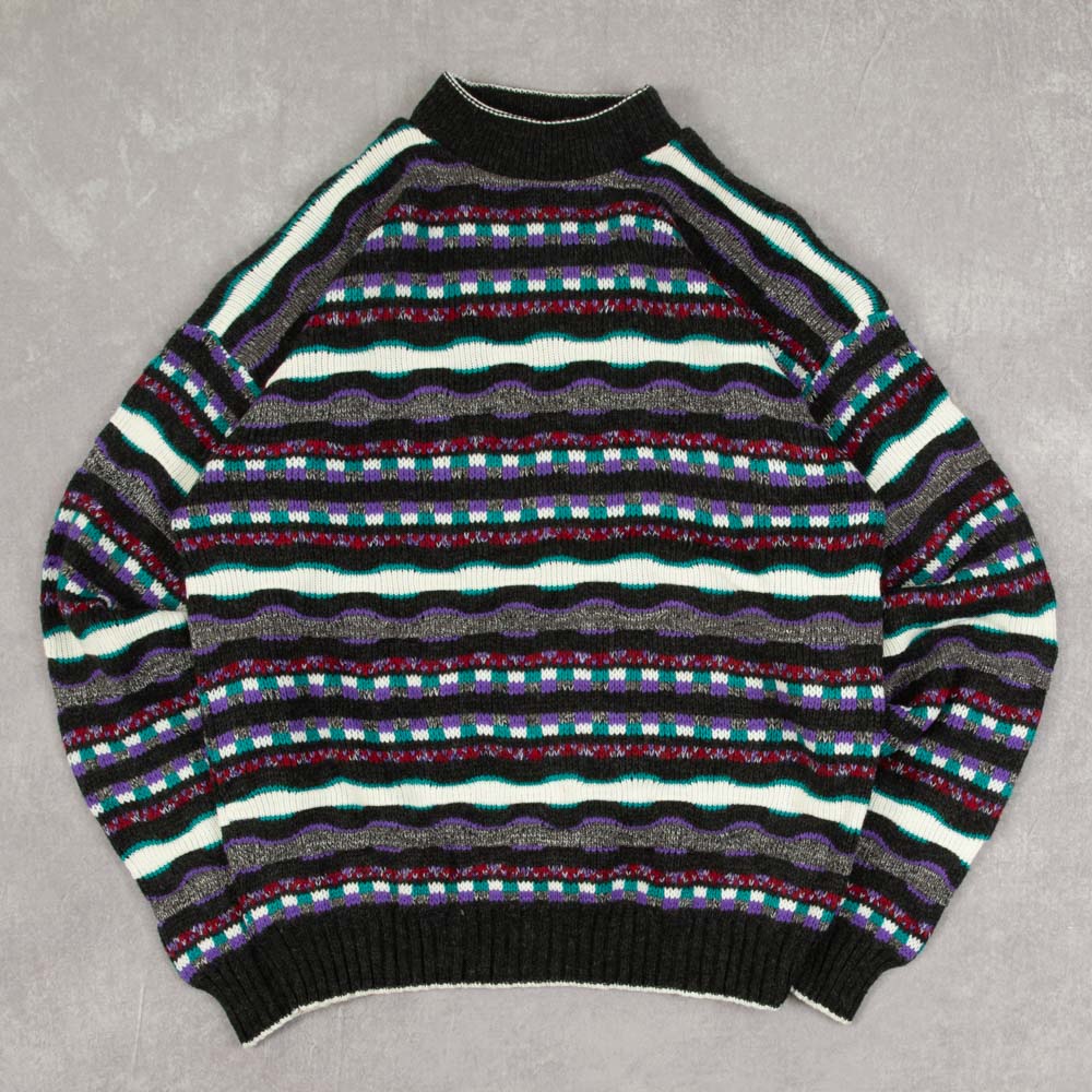 MEN'S VINTAGE 1990S STRUCTURED PATTERNED KNITTED JUMPER - MEDIUM