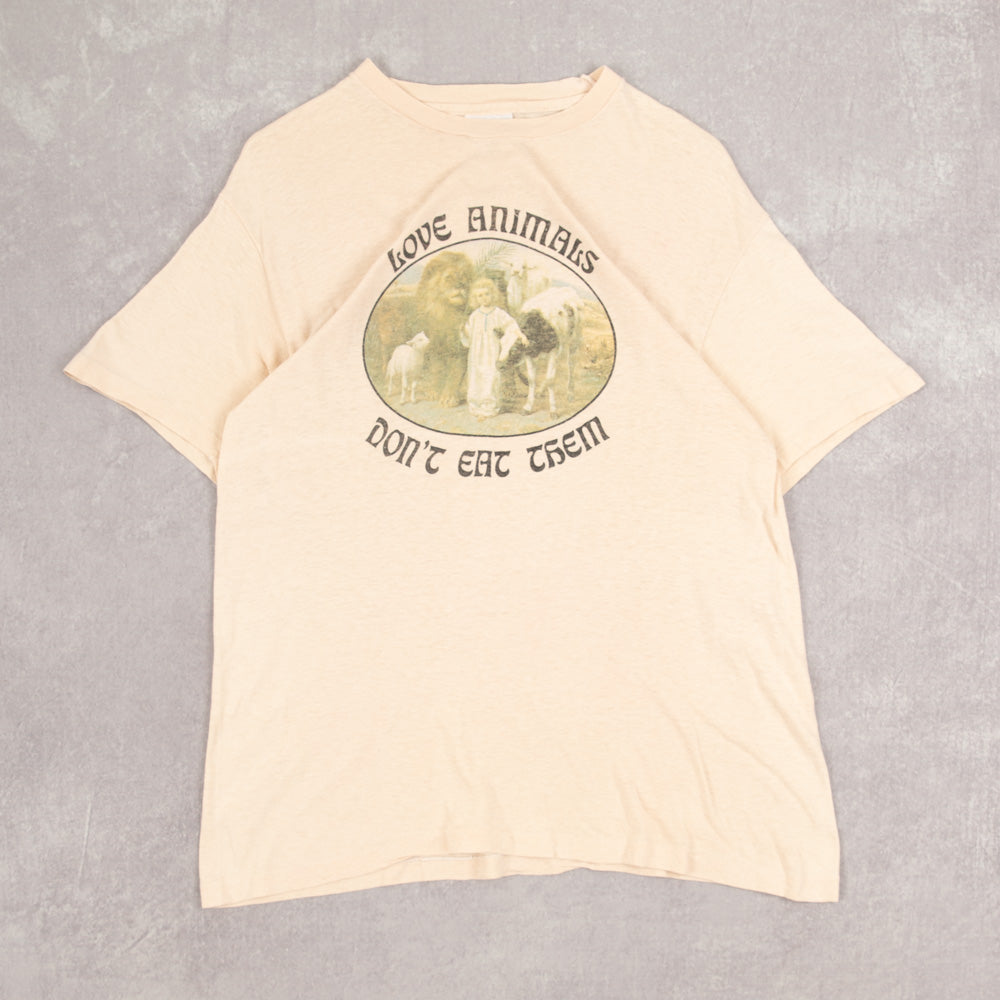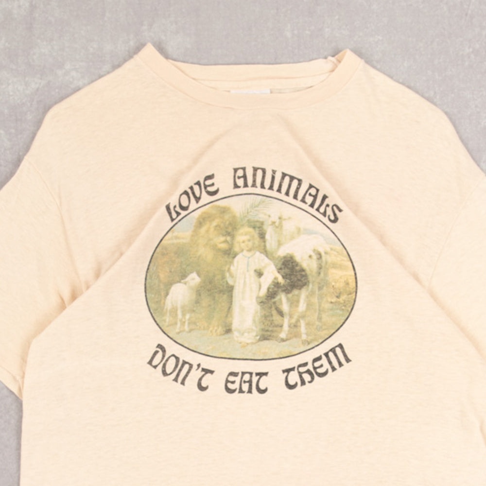 WOMEN'S VINTAGE 1980S LOVE ANIMALS SINGLE STITCH T-SHIRT - LARGE