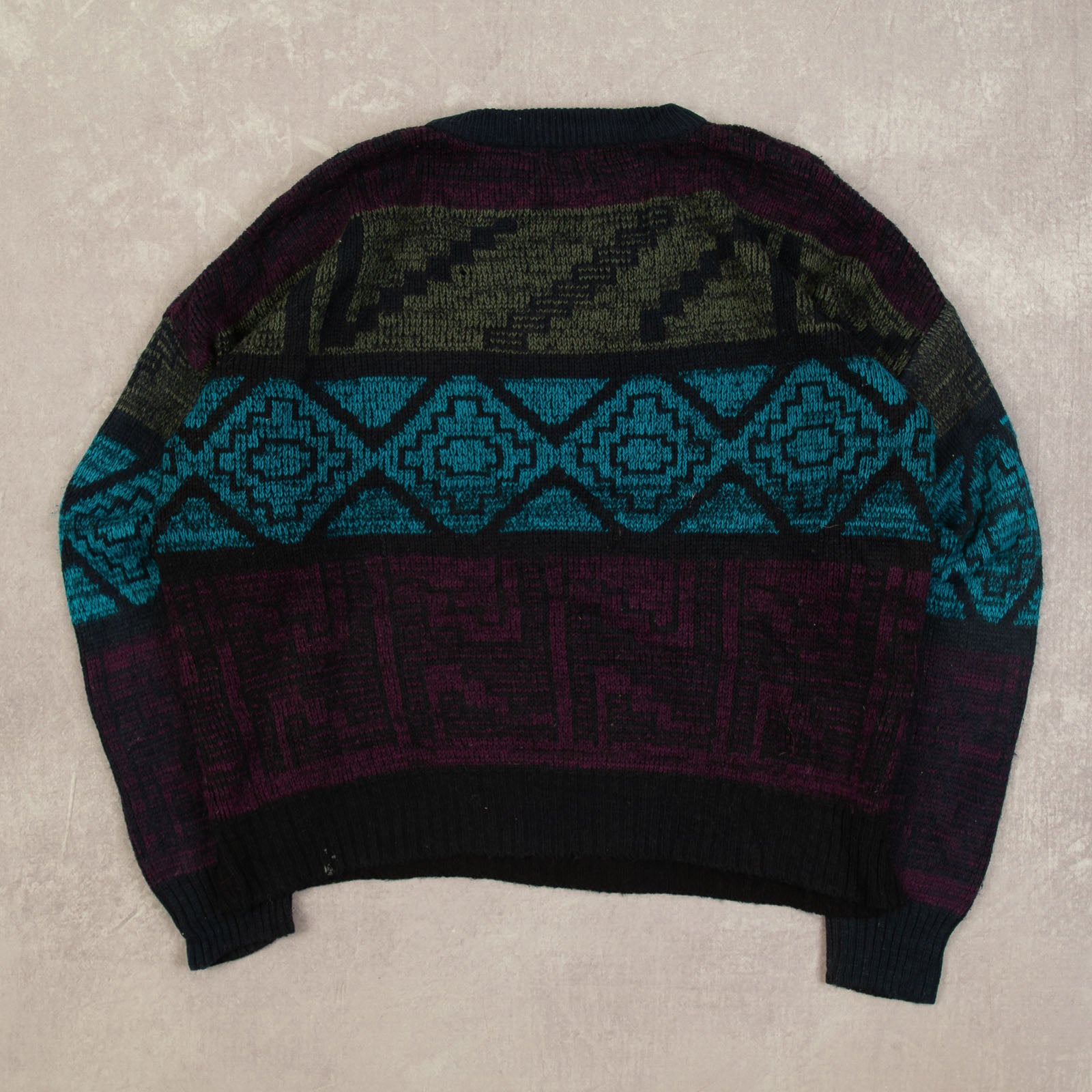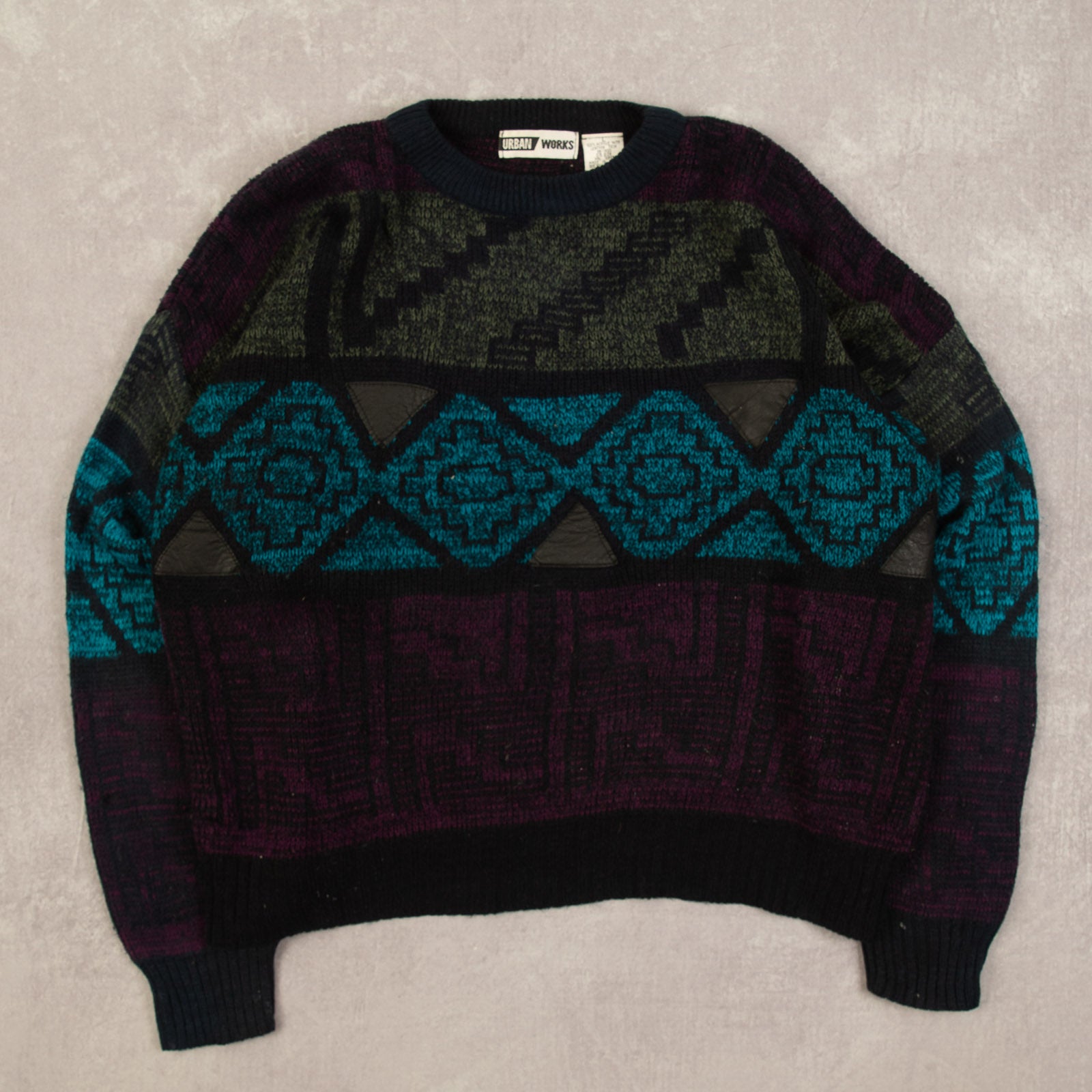 WOMEN'S VINTAGE 1980S PATTERNED PATCH KNITTED JUMPER - XX-LARGE